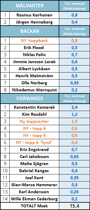 Återstår att se hur VIK kommer bygga klart centersidan. Tidigare har det ju talats om att ha mer defensivt säkra centrar än tidigare. Flashigare vingar får stå för finesserna.