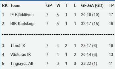 Även om det är tidigt kan topp-3-lagen Björklöven, Karlskoga och Timrå göra ett miniryck, om exempelvis Timrå vinner mot VIK nu.