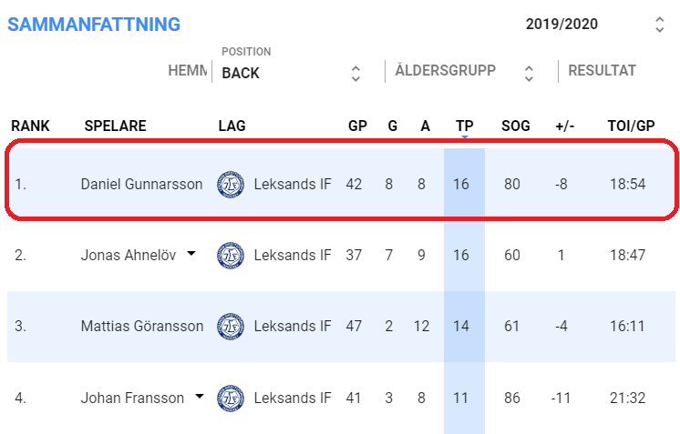 Gunnarsson var alltså poängbäst i Leksand i SHL så sent som 2019-20, med tredje mest istid. Sådana spelare brukar dominera i Allsvenskan. Bara sju SHL-backar gjorde fler mål då!