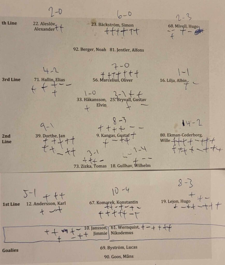 På backplats var inte tjeckiska U17-landslagsbacken Tomas Zizka så färgande, men verkar ha fina höfter att öppna upp för lite Ulf Dahlén och stark åkning. Fick även en god känsla för backen Gustav Bryvall (2006), kylig med pucken.
