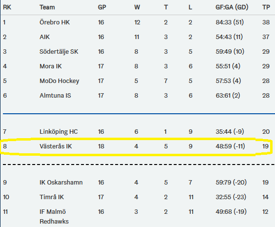 Nedslag i J20 fortsättningsserien. VIK har kniven mot strupen att försöka undvika negativt kval där SHL-lag har en garanterad plats. Nu krigar VIK mot Oskarshamn och Linköping för att undvika negativt kval.