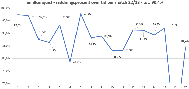Inledde starkt och hade länge klart bättre siffror än JG. Hade fina 92,3 i räddningsprocent efter sina första sju matcher långt in i november.