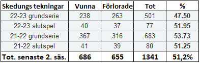 Dock har Skedung varit lite över hygiengränsen på 50 % över tid: