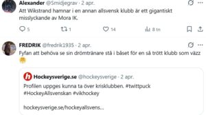 En väldigt god grund att sätta den sportsliga ledningen från början. Du har inte alls höjt förväntningarna med dina rapporter och tips Micke 🙂 Från Värmlands Folkblads Johan Ekberg, nu Ante Karlssons önskan om assisterande och det blev inte bättre när du grävde fram intervjun med Wikstrand på VF podd där han visade på analysförmåga och ödmjukhet. Ska man uppleva silly season hybris snart? Två snabba förvärv av bra centrar samt minst en bra back, då finns det risk för att det kommer krypande 🙂