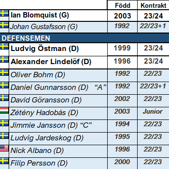 För att spara pengar till mer spets framtungt kanske David Göransson får en ny chans som billig breddback med utvecklingspotential. Sedan har vi även superintressante Rasmus Larsson i J20, men ska kanske till NCAA då det varit så tyst om backen trots den bitvisa dominansen i J20.