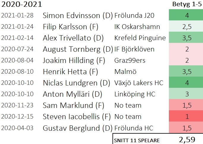 Detta efter ett lite sämre värvarår med Zätamått mätt. Om vi börjar med att kika på Zätas alla värvningar med bloggens betyg på värvningens första säsong i VIK sett till förväntningar och utfall då signeringen gjordes: