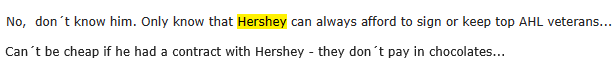 Förstod att Hershey är ett storlag i AHL då jag fick detta svar från en NHL-scout, som dock tyvärr ej hade scoutat Gersich: