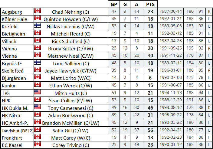 Tidigare listade bloggen en rad AHL-centrar och nu skrapade bloggen ihop dessa 19 från olika ligor runt om på vår kontinent: