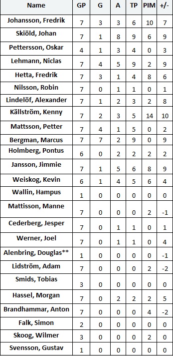 Tankar om Pontus Holmberg till Växjö & formtabell intern poängliga