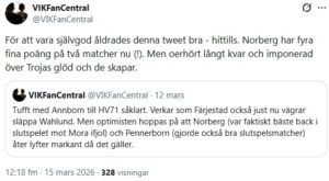 Tack Micke för utmärkt rapport! Så jäkla gött resultat! Som du säger, äntligen lite bra utfall för VIK i ett sådant skede där man är van att bli hjärtekrossad: långa och ovissa slutspelsmatcher 😅