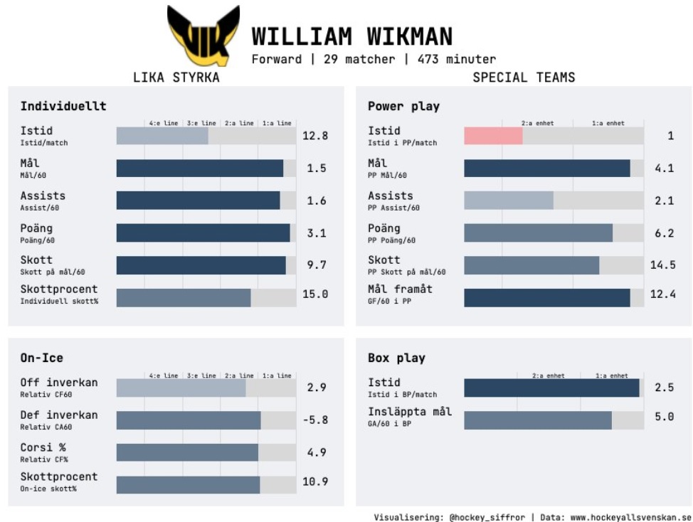 Det är bara att kika i den eminenta sammanställning Viktor Jansson, via @hockey_siffror på Twitter, gjort nedan gällande som verkligen visar att Wikman tagit klivet till att bli en riktig toppkedjespelare denna säsong: